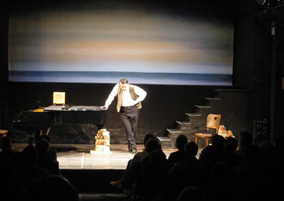 Das Leben ohne Zeitverlust Schauspiel mit Chansons Text: Erich Kästner Musik: Edmund Nick BlackBox im Gasteig Bühnenbild: Christof Wessling 2005 |